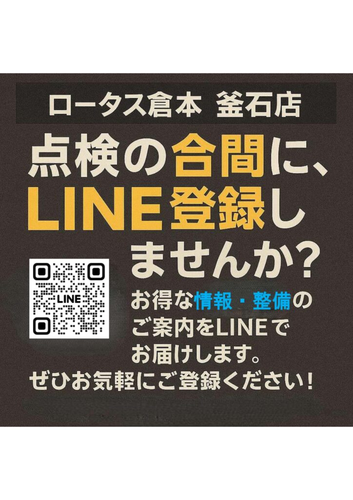 ロータス倉本釜石店LINEはじめました!お得な情報等をお知らせする予定です。LINE登録よろしくお願いします!