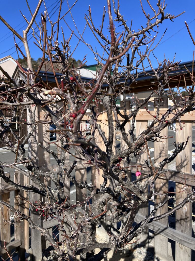 2月ももうすぐ終わりますね!暖かくなってきたので梅の花も咲きかけてきました。沿岸の地域は県内でも一番といっていいくらい暖かいです。